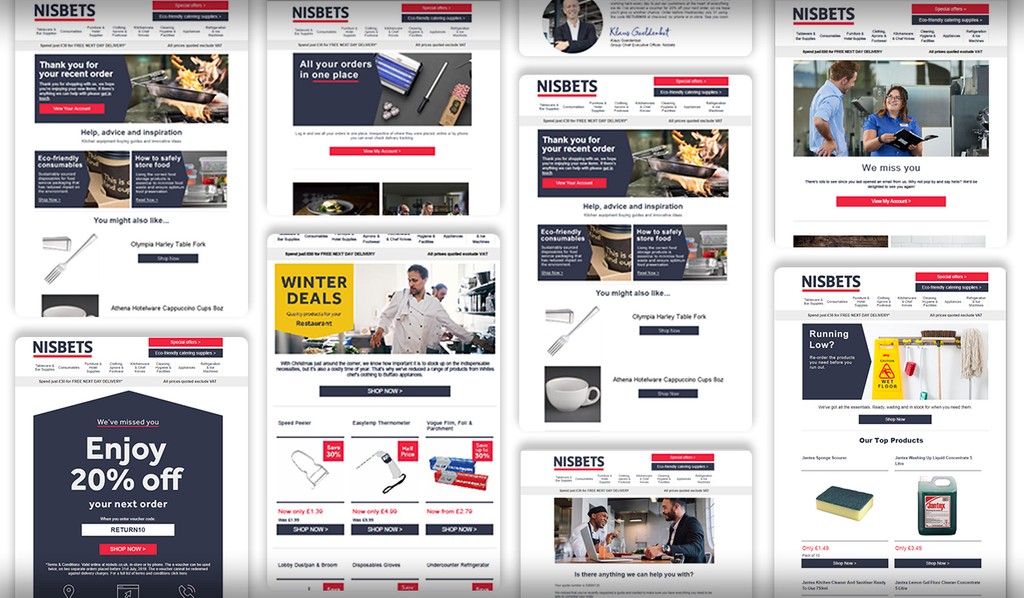 Before working with us, Nisbets had very little automation set up. We implemented advanced abandonment across basket and browse. Nurturing customers into high-value items. We developed a contact strategy around large commercial items and resolving pain points in the buying process. Highlighting ease of delivery and split payment methods reduced abandonment rates and improved average order value.